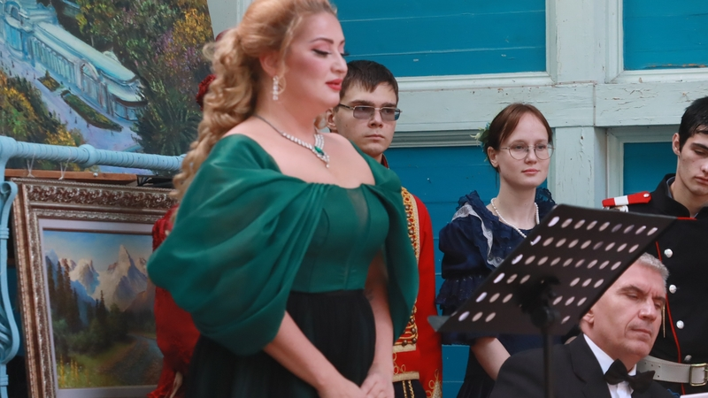 «Сегодня мы перенеслись на два столетия назад, когда Михаил Лермонтов встречался в Железноводске с кузиной Катенькой — это исторический факт. Его мы взяли за основу. И вот Катенька делает подарок-сюрприз поэту, приехавшему отметить именины на курорт— это уже наш вымысел. Быховец приглашает любимую певицу поэта Елизавету Шашину, которая исполняет для Лермонтова романсы на его стихи»,