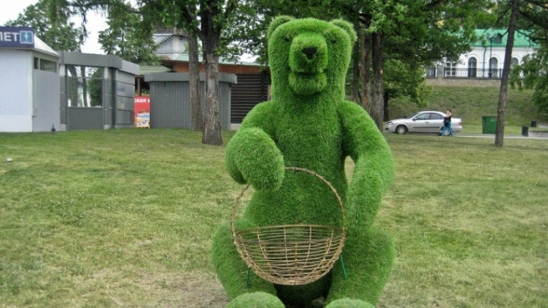 Фигуры, выполненные из искусственной травы, украсят вход в Курортный парк. Также территорию ожидает озеленение.