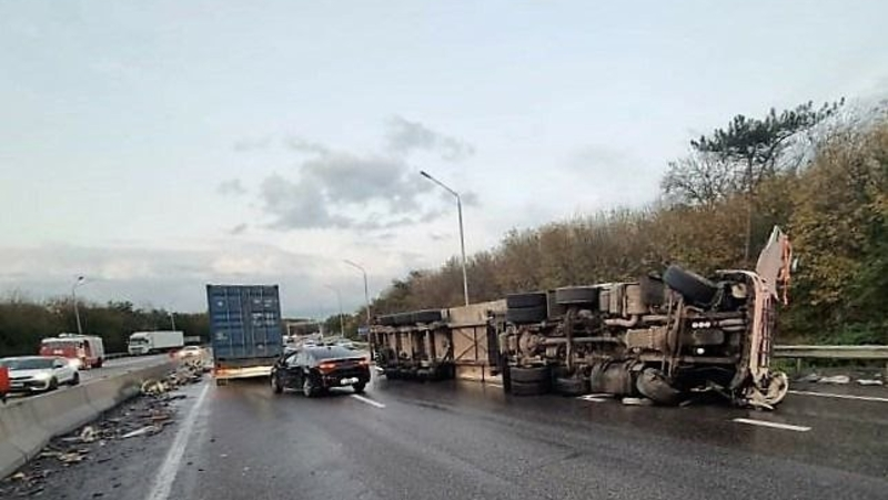 В воскресенье, 12 октября, примерно в 16:30 на 1-м км автодороги: «Обход посёлка Иноземцево» 38-летний водитель грузовика «Вольво» не справился с управлением. Он врезался в бетонное ограждение и перевернулся.